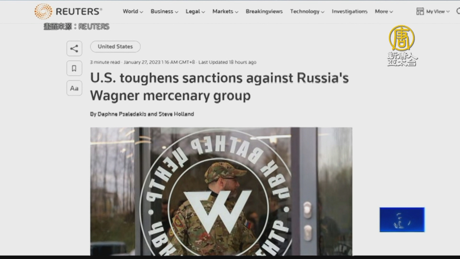 【新唐人亞太台 2023 年 01 月 27 日訊】針對烏俄戰爭,美國財政部和國務院周四宣布一系列行動,正式將俄羅斯傭兵組織華格納集團定性為跨國犯罪集團。美國財政部並制裁一間中國公司,因為這間公司涉嫌將烏克蘭的衛星圖像,提供給華格納集團,在對烏克蘭的作戰中使用。