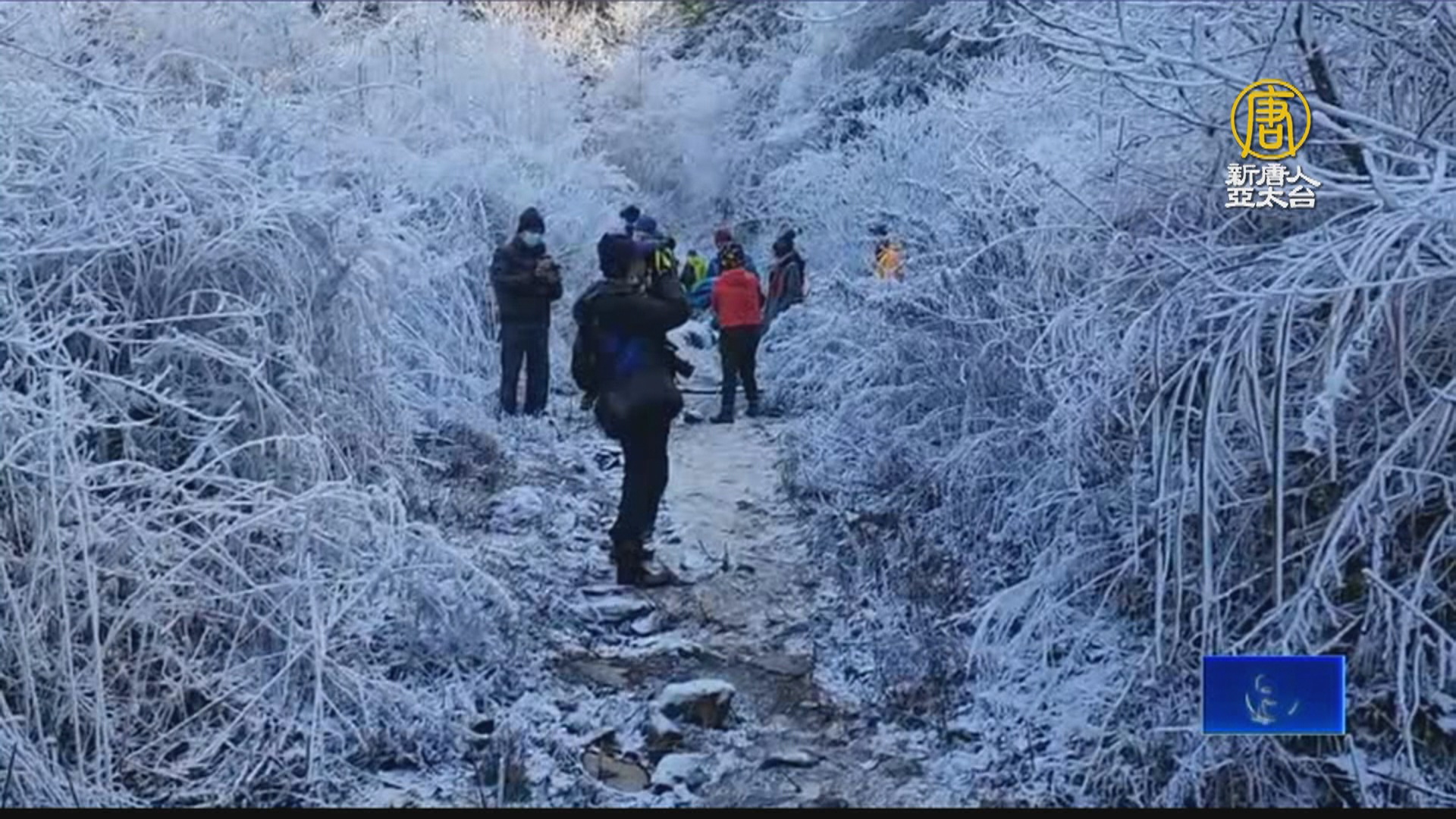 台7甲線45.7K附近,氣溫一度低到零下3.5度,下雪了,雖然28日上午,氣溫回升到2度上下,不過,台中和平與宜蘭交界處,思源埡口,兩邊路樹和森林已經結凍,滿是純白的霧淞,就像進入水晶森林,景致美到令人屏息,民眾紛紛下車,就在小徑上取景。