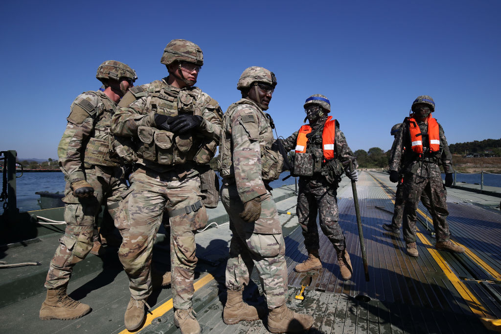 據報導,一南韓士兵在兩韓邊界附近誤扣機關槍板機 ,促使南韓軍方通知北韓這次開槍純屬意外並非蓄意。圖為2022年10月美韓國士兵在韓國演習資料照。(圖/GettyImages)