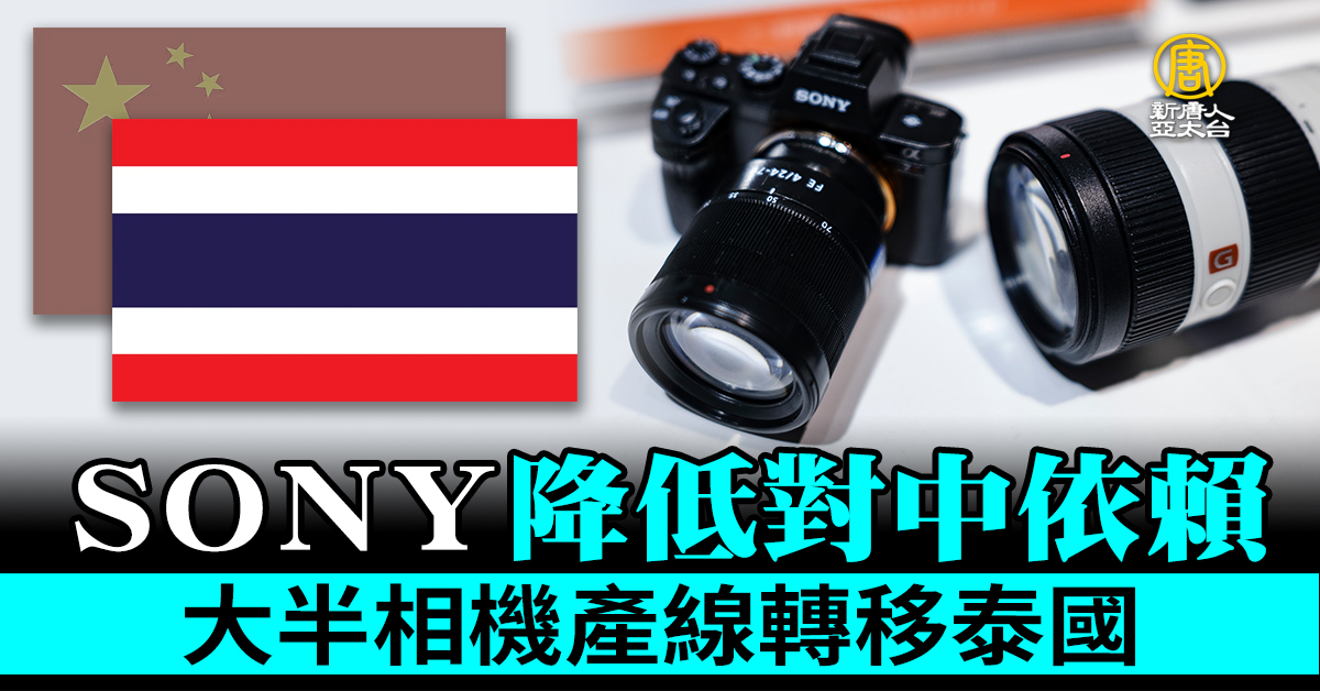 【新唐人亞太台 2023 年 01 月 30 日訊】為了降低對中依賴,日經新聞報導,Sony已經將銷往日本、美國和歐洲的數位相機生產線,從中國移往泰國,中國工廠原則上只生產供應中國市場需求的產品。英國調查公司指出,去年Sony數位相機的全球銷售量約211萬台,當中,中國市場為15萬,美日歐等市場佔比達9成以上,這代表Sony將一大部分的相機生產轉移到泰國。另外,日本佳能去年關閉中國部分相機工廠,將生產移回日本;空調大廠大金工業也計畫在今年內打造去中化供應鏈。
