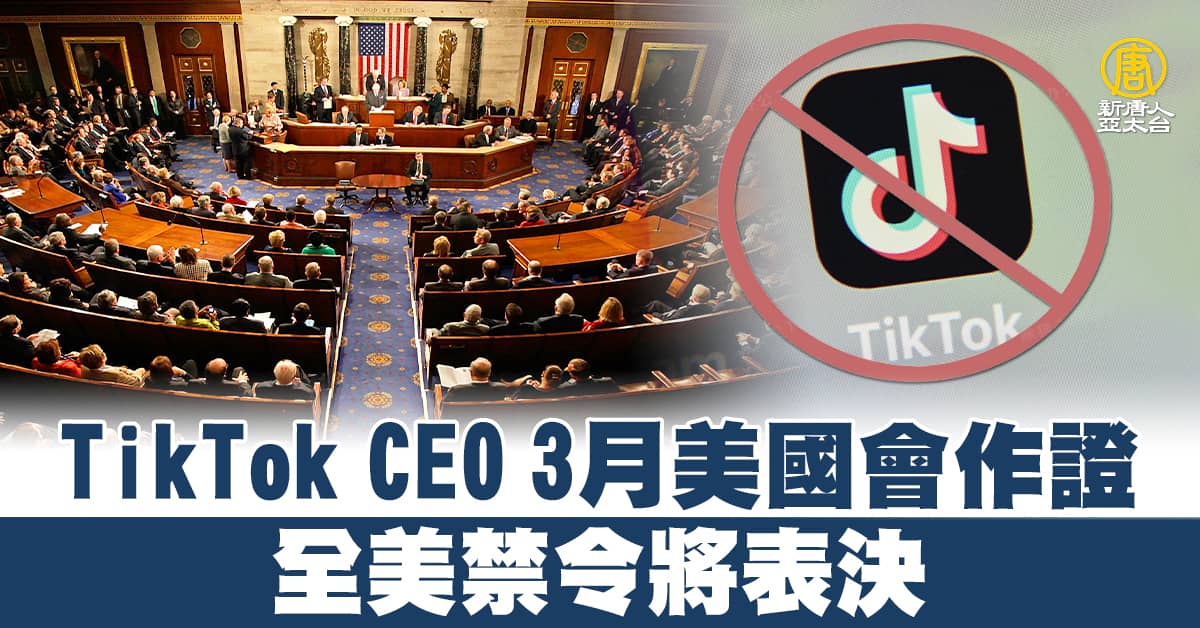 【新唐人亞太台 2023 年 02 月 01 日訊】美國眾議院「能源和商業委員會」證實,將在3月23日舉行聽證會,要求抖音海外版TikTok的首席執行官周受資到國會作證。這將是TikTok首席執行官首次出席國會小組的聽證會。