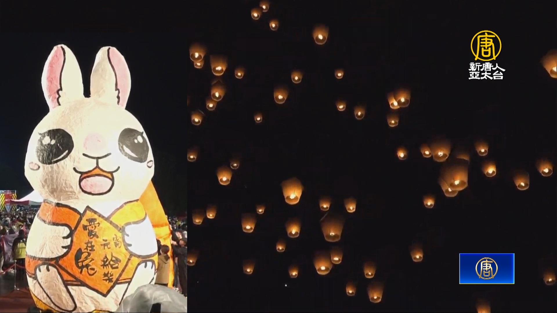 【新唐人亞太台 2023 年 02 月 05 日訊】帶您看到,元宵節的重頭戲,平溪天燈節2月5號在新北市十分廣場登場,今年超大型的兔年造型主燈與超過百盞4呎兔影天燈,點綴元宵節的夜空。