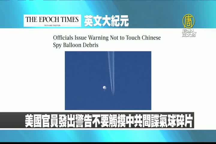 【新唐人亞太台 2023 年 02 月 06 日訊】首先來看到美國大紀元英文版報導:北卡與南卡羅來納州地方官員警告當地人,不要觸摸在大西洋上空被美國戰機擊落的疑似中共間諜氣球。