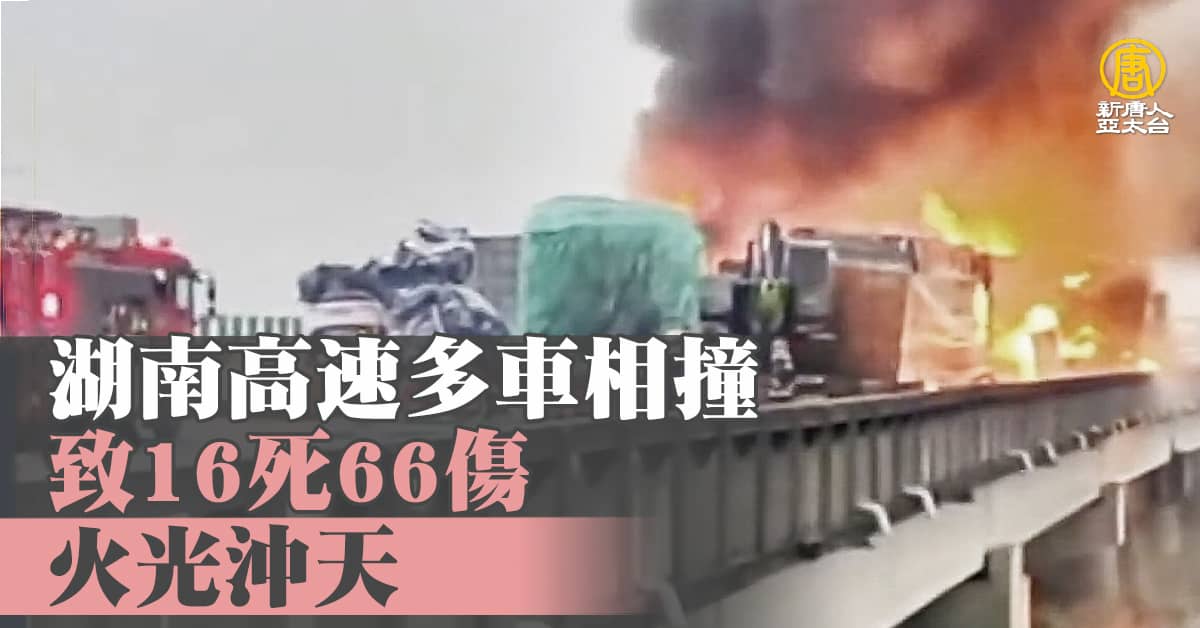 【新唐人亞太台 2023 年 02 月 06 日訊】來關注中國消息:湖南省一高速路段週六發生多車追撞事故,造成車輛起火,官方通報,事故已經造成16人死亡、66人受傷。
