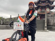 印度旅人騎遍全球推廣愛滋防治 盛讚台灣單車環境