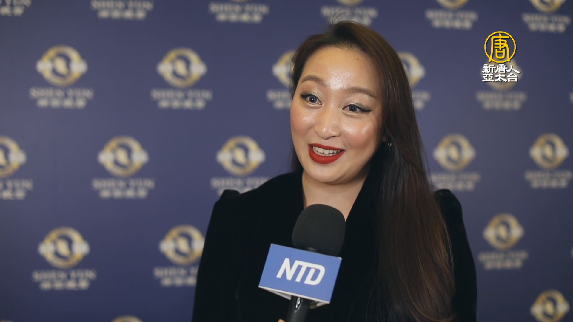 風琴手 金智恩:「作為一個母親聽到孩子的哭聲很心疼。身臨其境的舞台配置和演出技巧,讓我覺得自己身在其中,感同身受。這種演出非常好。即使不去中國也可以學到中華文化。可以看到(中國傳統的)色彩,紋飾等。因此我非常想和大家分享這些,告訴他們一定要看神韻。」