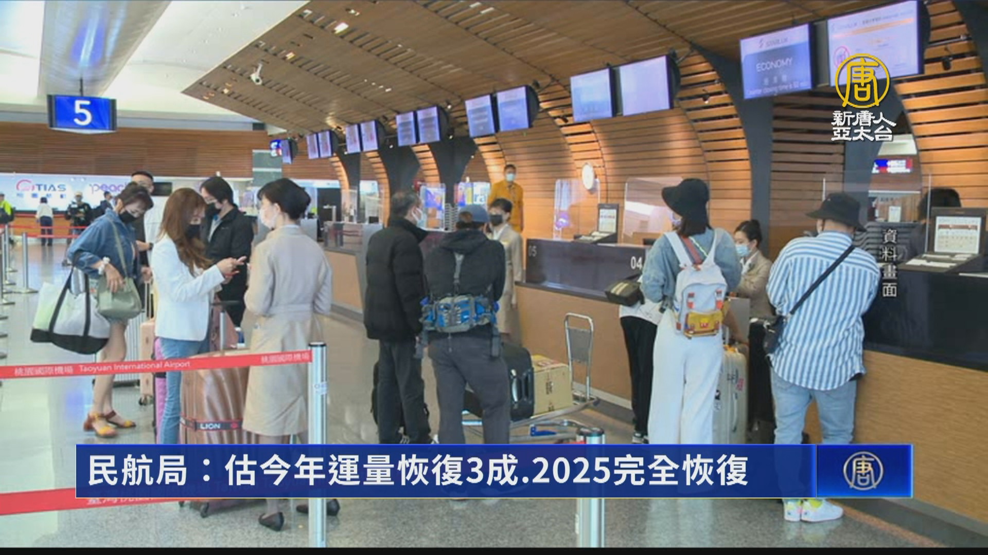 【新唐人亞太台 2023 年 02 月 07 日訊】台灣拚疫後國際觀光,航空載客量也逐步回溫,民航局今天表示,去年的國際載客數578萬,對比2021年成長4.6倍,同時預期今年的客運量,可以恢復疫情前3成。