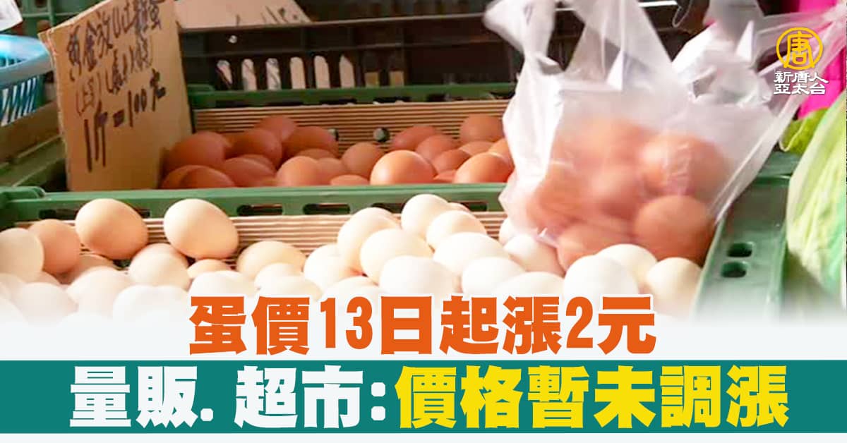 【新唐人亞太台 2023 年 02 月 13 日訊】民生消息來看到,受到國際禽流感影響,加上飼料價格居高不下,台灣的雞蛋供應缺口持續擴大,蛋商公會與蛋農達成一致協議,宣布從今天13日開始調漲雞蛋售價,每台斤上調兩元,產地價從40.5元攀升到42.5元,重回去年7月創下的歷史高點,不排除後續還會再調漲,不過目前量販店與超市都表示,努力為消費者補貨,目前正常供應、價格沒有調漲,而這波漲價潮則將為大成、卜蜂、福壽等上市蛋品供應商的營收增添動能。