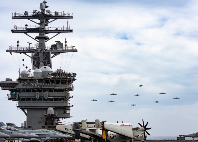 疑似中共偵察氣球遭擊落加劇美中緊張之際,據報導美海軍航空母艦打擊群和兩棲艦隊正在南海聯合演習,測試整合作戰能力。圖為尼米茲號航空母艦資料照。(圖/翻攝自DVIDS)