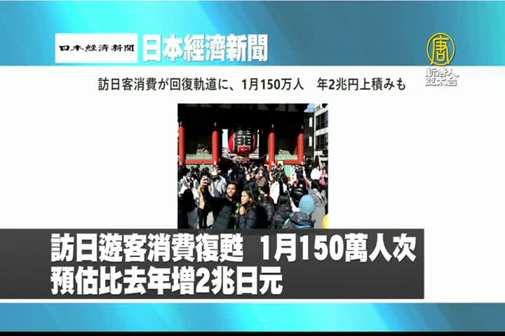 【新唐人亞太台 2023 年 02 月 16 日訊】來看到日本經濟新聞報導:訪日遊客消費復甦,1月訪日遊客達150萬人次,預估2023年將比去年增加2兆日元。