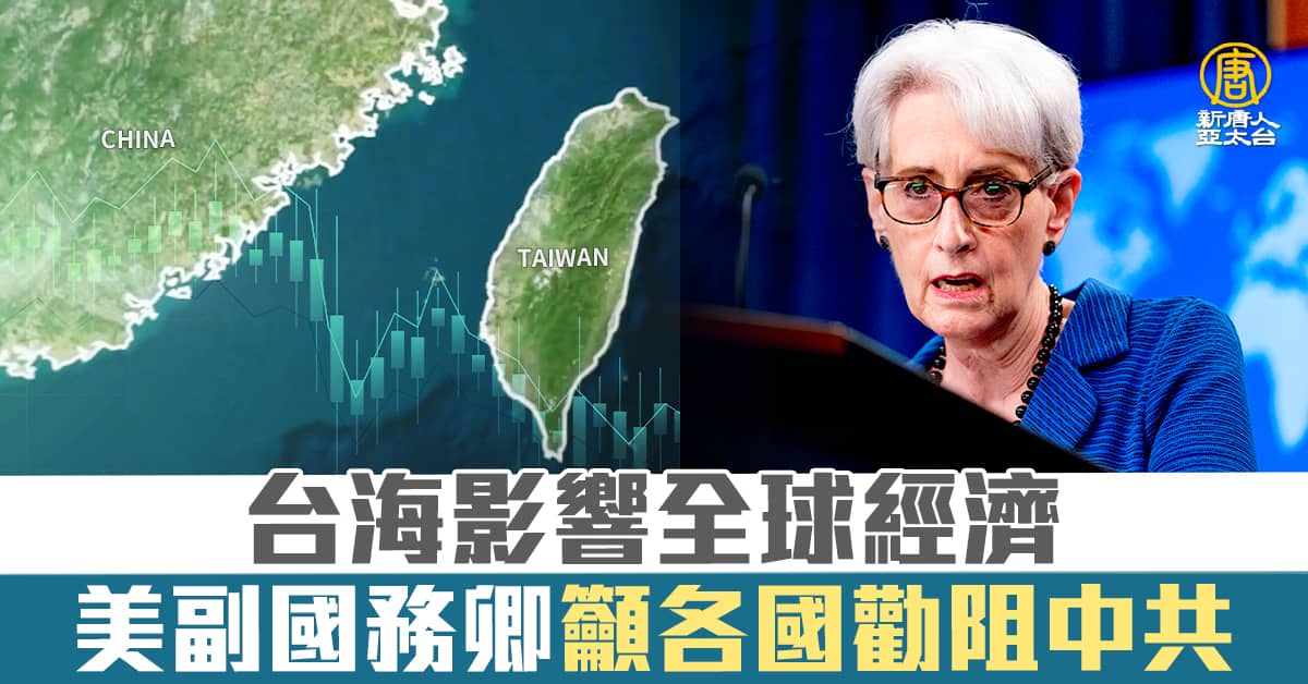 【新唐人亞太台 2023 年 02 月 16 日訊】美國副國務卿雪蔓(Wendy Sherman)15日表示,台海如果爆發衝突,不只將衝擊亞洲安全,也會衝擊全球經濟安全,並指出俄烏戰爭就是一大例證。雪蔓呼籲各國勸阻中共領導人習近平,告訴他,犯台不是好主意。