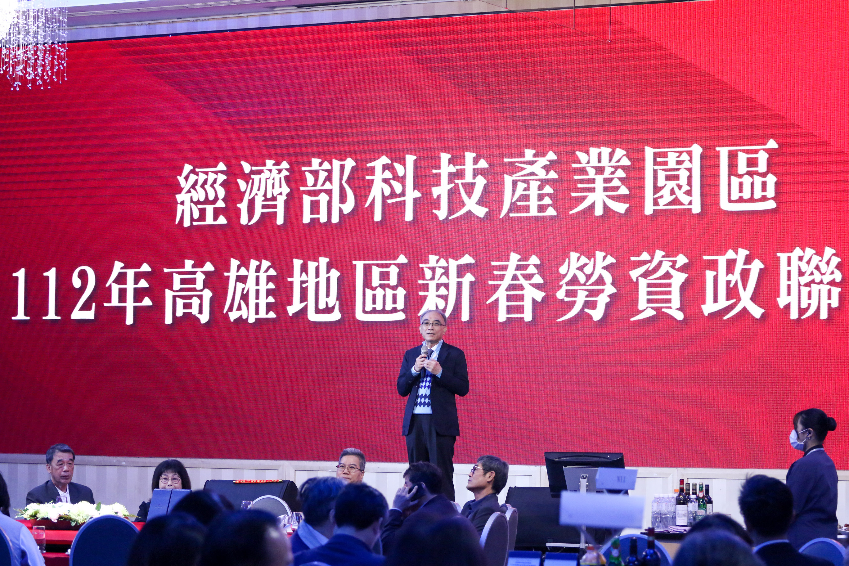 【新唐人亞太台 2023 年 02 月 17 日訊】科技產業園區2月起陸續辦理屏東、高雄及台中地區新春聯誼會,「經濟部科技產業園區112年高雄地區新春勞資政聯誼會」高雄地區壓軸場,週三(15日)在漢來大飯店巨蛋會館舉行。為增進與區內事業間之溝通聯繫,並感念園區企業扶持相挺,增進勞資政三方和諧情誼,邀請高雄各園區勞資雙方代表及各界相關人士與會,近350位貴賓齊聚一堂。