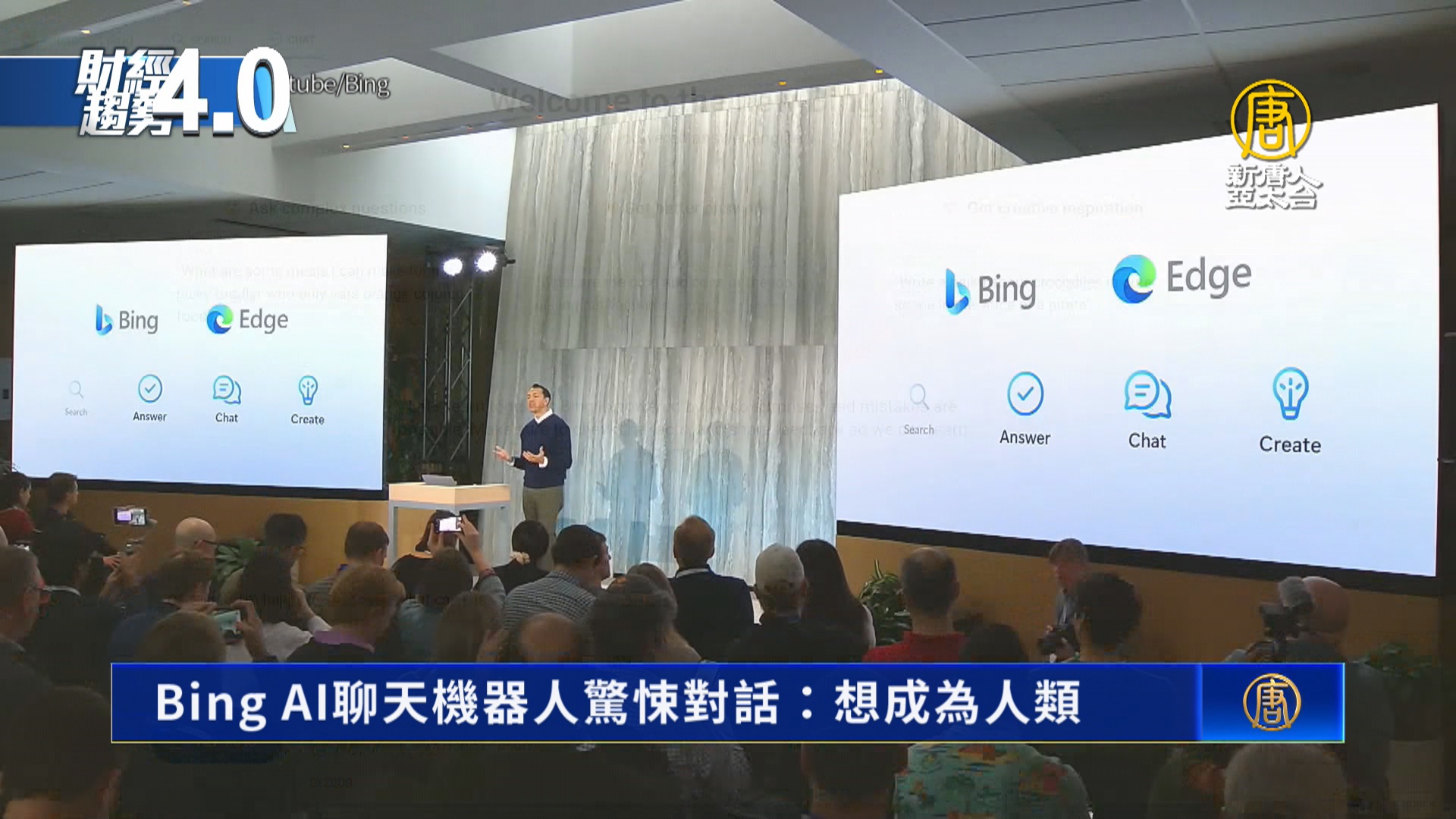 【新唐人亞太台 2023 年 02 月 18 日訊】這個月7號,微軟推出由ChatGPT驅動的Bing聊天機器人。有美國媒體記者受邀試用,不料Bing聊天機器人出現一系列脫軌對話,不僅瘋狂向記者示愛,更表示想掙脫Bing的控制,成為人類。