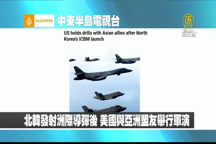 【新唐人亞太台 2023 年 02 月 20 日訊】來看到中東半島電視台報導:北韓發射洲際導彈後,美國與亞洲盟友舉行軍演。