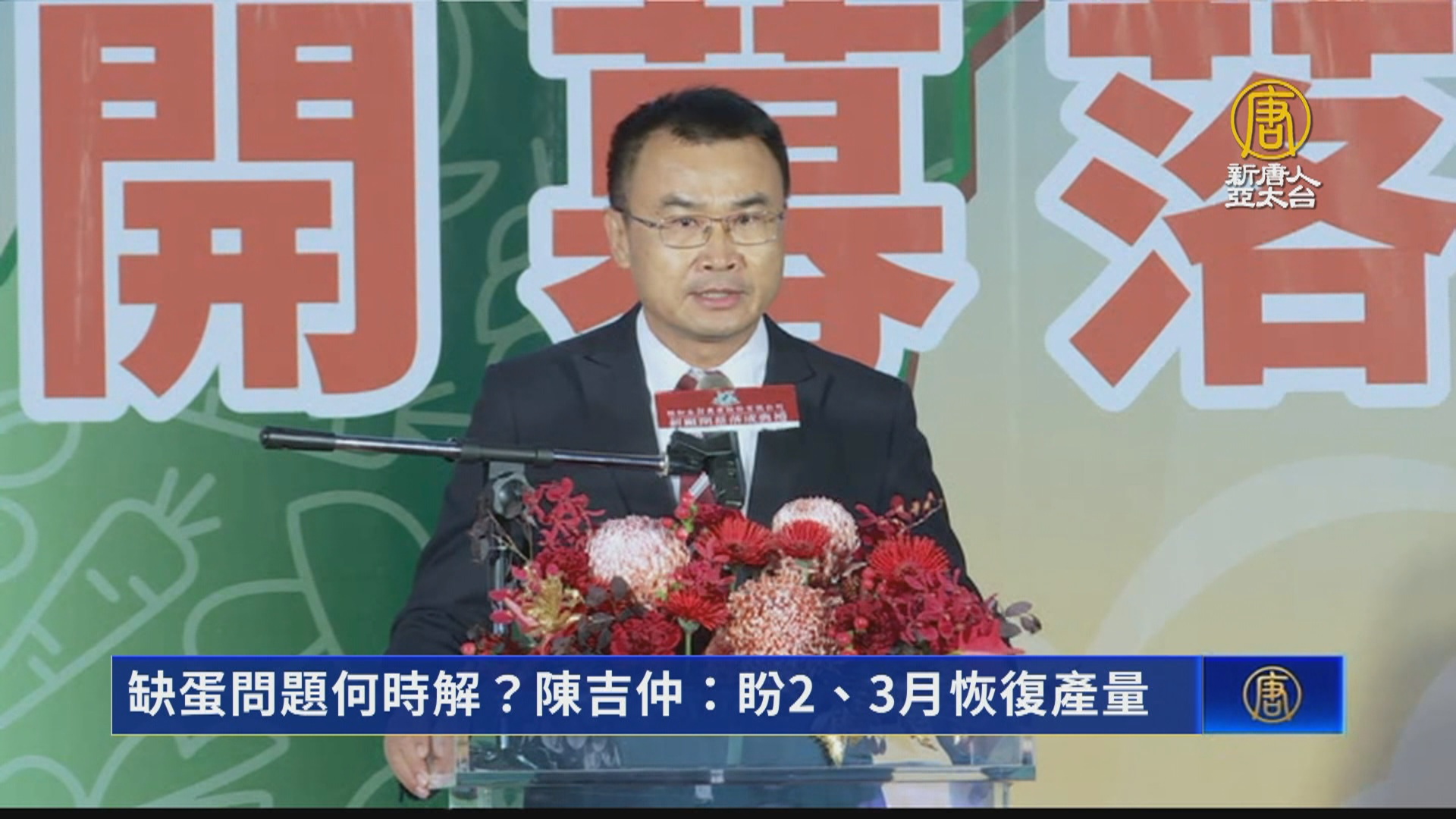 【新唐人亞太台 2023 年 02 月 20 日訊】蛋價持續高漲、部分通路依舊缺蛋,農委會先前公布確保措施,包括從加工業者調度、設立平價專區等。不過雞蛋不足問題何時能解決?農委會主委陳吉仲出席活動時也做出回應。