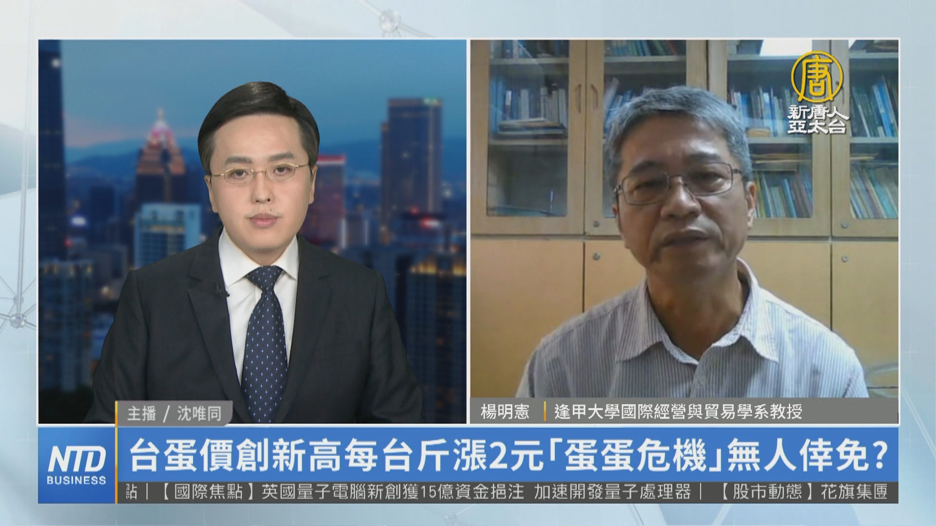 【新唐人亞太台 2023 年 02 月 22 日訊】蛋價問題各界關注,台灣蛋價每台斤調漲2元,創下歷史新高。其實這波調漲原定是在過年後,6日起要漲3元,而且農委會與蛋商業者、蛋農都已經談妥。但最後關頭業者卻收到取消漲價的通知。我們請教農業專家、逢甲大學國際經營與貿易學系楊明憲教授,您怎麼看台灣雞蛋不足的危機?目前國際蛋價出現飆漲,您怎麼觀察結構性的影響因素?