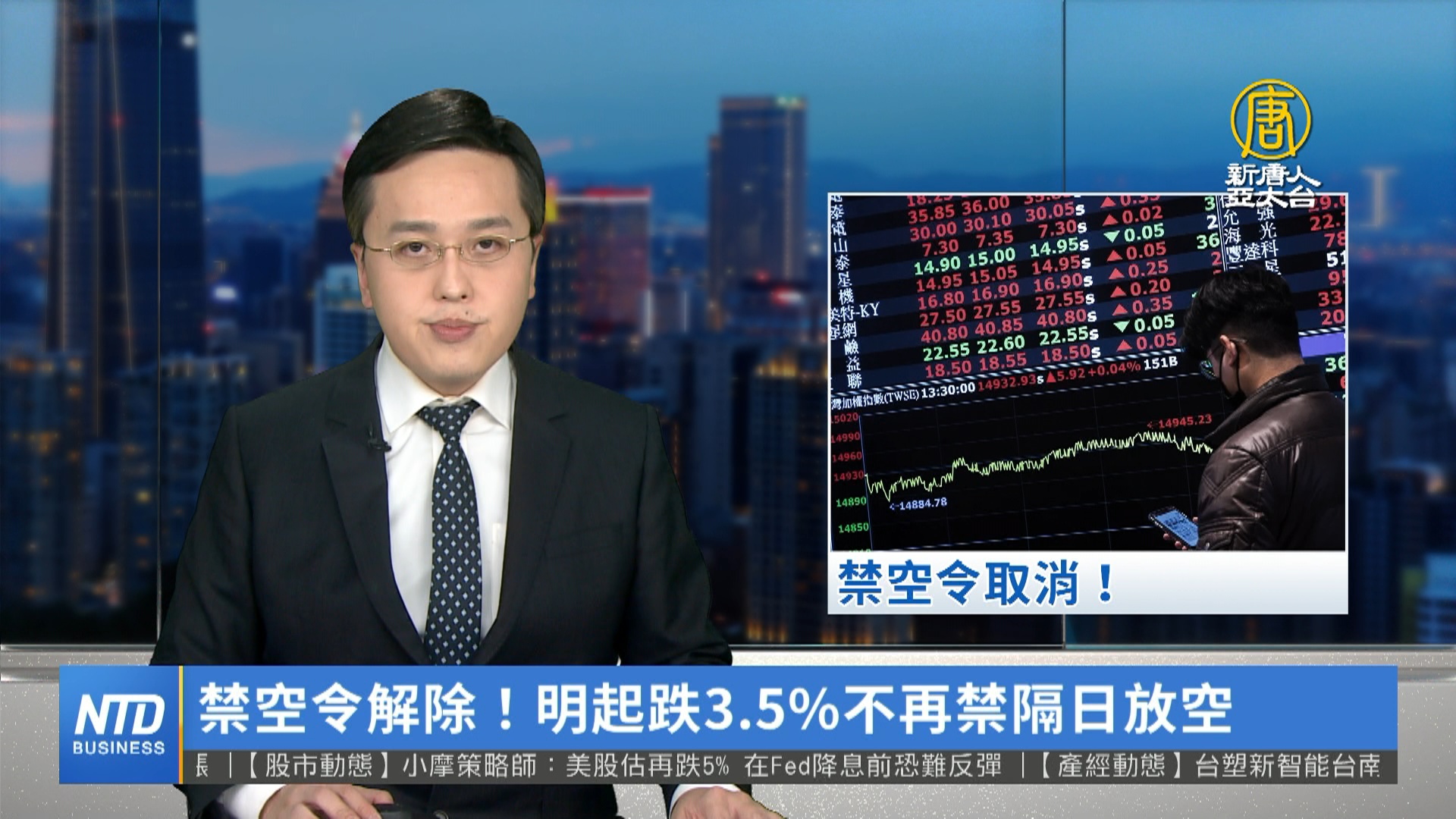 【新唐人亞太台 2023 年 02 月 23 日訊】台股「禁空令」解除!時隔四個月後,金管會指出,近期國內外股市已逐步回穩,國際市場不確定性因素趨於緩和,取消當日收盤價跌幅達3.5%以上,次一交易日不得放空的措施,從明天開始實施。