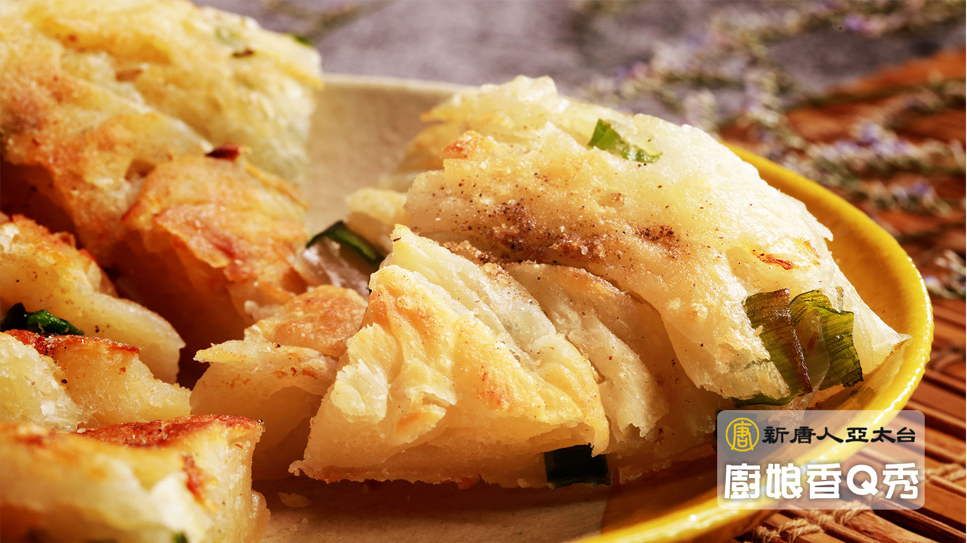 酥脆麵皮Q彈有嚼勁,再加滿滿的新鮮蔥餡,資深中式點心師傅鄭文照老師分享的蔥油餅秒殺。鄭文照 老師表示整理蔥油餅的麵團要首重手感,方法是將麵團放在手虎口處,用另一隻手姆指,往麵團中間擠,每擠一下,再用拿麵團的二手指把麵團往上擠壓出空氣,此動作五至六下,麵團不只成圓而且平整光滑。蔥洗淨後再切粗丁,且要晾一個晚上晾乾。麵團表面抹沙拉油是避免麵皮風乾,也可壓平放塑膠袋,放冷凍庫保存。煎蔥油餅要油多,小火慢煎。