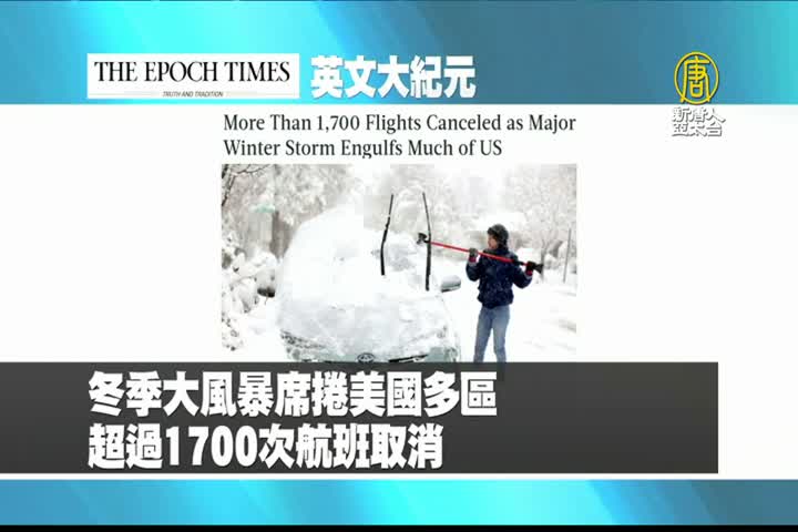 【新唐人亞太台 2023 年 02 月 24 日訊】首先來看到美國大紀元英文版報導:週三,超過1700個美國航班被取消,大規模冬季風暴可能給美國帶來創紀錄降雪。