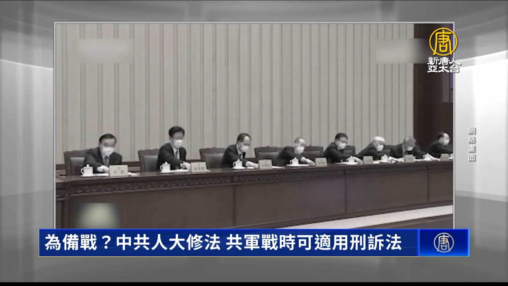 【新唐人亞太台 2023 年 02 月 27 日訊】中共人大常委會,24日通過決定,「軍隊戰時實施國家刑事訴訟法」,立法已獲得通過並生效。有專家分析,這是中共為備戰開展軍管,做法律層面的準備,同時大陸民眾的言論會被嚴控。