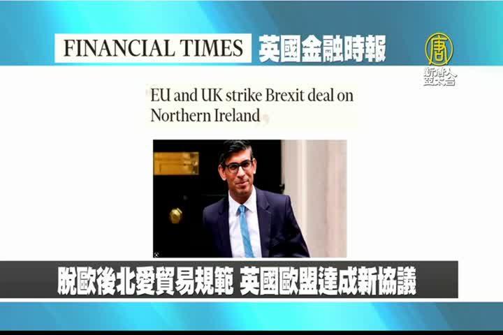 【新唐人亞太台 2023 年 02 月 28 日訊】接著是英國金融時報的報導:就脫歐後的北愛爾蘭貿易規範,英國和歐盟達成新協議。