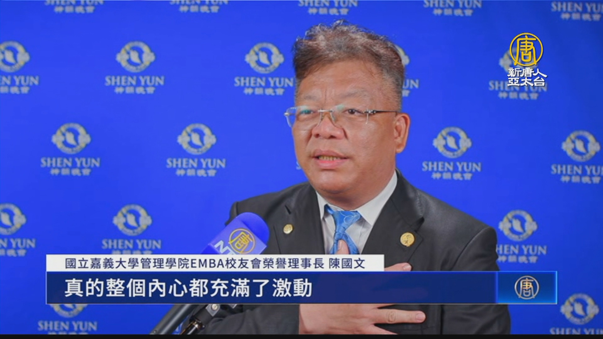 【新唐人亞太台 2023 年 03 月 01 日訊】美國神韻世界藝術團28日在台灣高雄演出,連兩場爆滿,感動了第五次觀賞神韻的EMBA校友會榮譽理事長陳國文,他感謝藝術總監,表示自己在場內,每一秒都充滿感動。