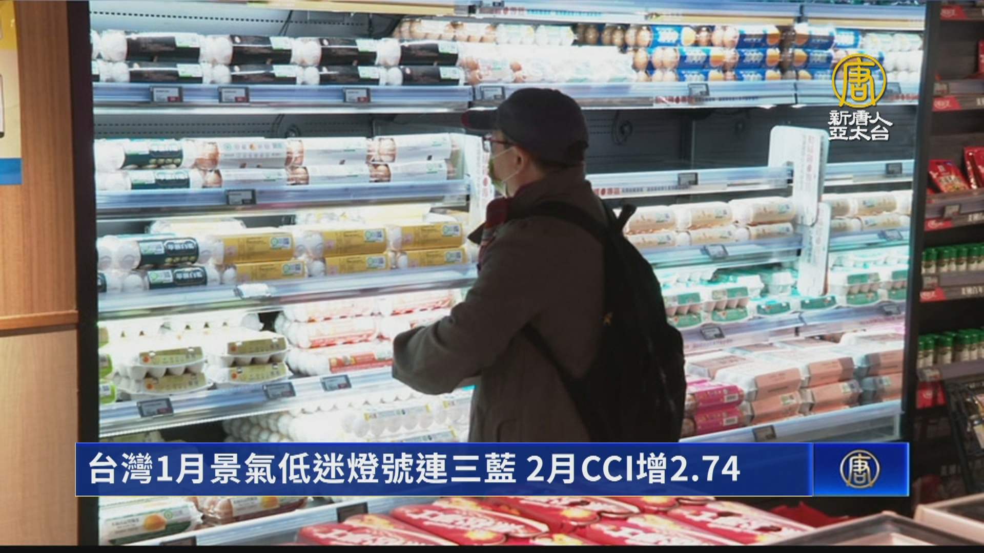 【新唐人亞太台 2023 年 03 月 01 日訊】國發會今天公布1月景氣燈號,續亮代表「低迷」的藍燈,已經連3藍。國發會坦言,受到通膨及升息影響,全球經濟成長動能疲弱,加上產業鏈調整庫存,衝擊台灣經濟表現。中央大學台灣經濟發展研究中心也公布,2月消費者信心指數為62.47點,跟上個月相比增加2.74點,連續2個月上升。學者指出,顯示國內消費信心變強,不過仍要留意出口衰退隱憂。