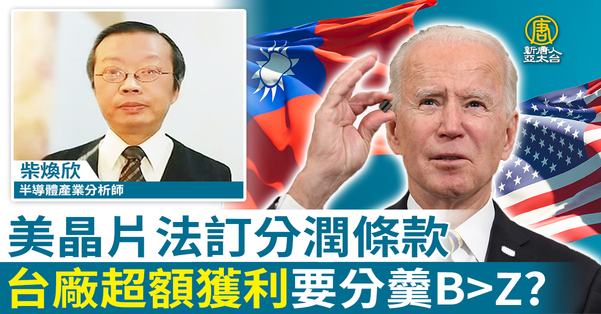 【新唐人亞太台 2023 年 03 月 01 日訊】美國晶片法案通過,提供390億美元半導體製造補貼,如果企業在美國蓋晶片廠,還能獲得25%投資租稅抵減,估計價值240億美元。我們請教半導體產業分析師柴煥欣,美國晶片法案申請事項也進一步公布,包含與超額獲利分潤、海外擴廠限制,是否有符合市場期待?對台廠影響您怎麼觀察?
