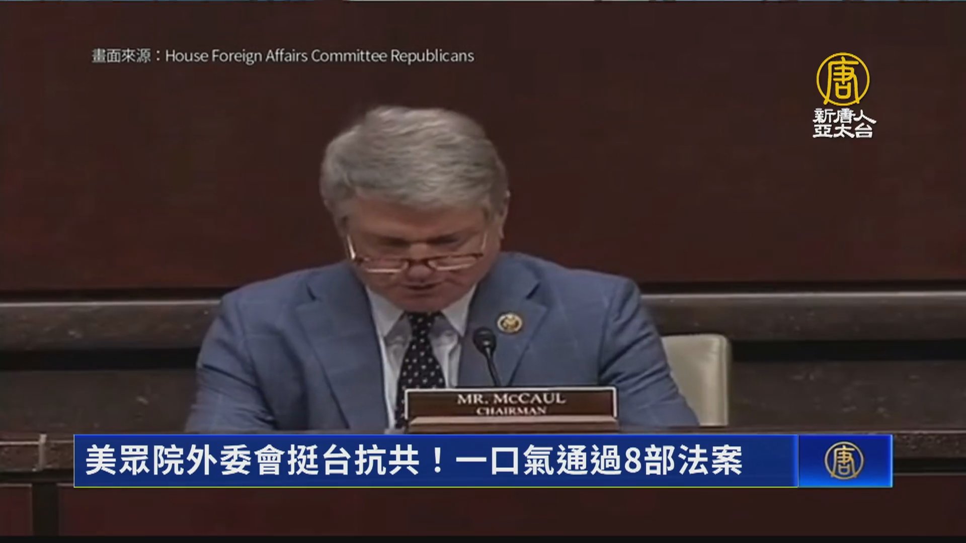 【新唐人亞太台 2023 年 03 月 01 日訊】新聞一開始,先帶您看到,因應中共威脅,美國眾議院一天召開五場聽證會。眾院外委會,28日就審議11部挺台灣、抗中共的法案,其中8部以口頭表決方式通過,包括「台灣保證實施法案」,要求國務卿定期檢視對台交往準則,至少每2年向國會提出報告,以確保任何美國對台政策的改變,都有益於深化台美雙邊關係。在對抗中共部分,通過6項法案包括「中華人民共和國PRC不是開發中國家法案」、「停止活摘器官法案」;此外,委員會也通過決議案,要求中共立即釋放被囚禁十多年的美國公民馬克.史威登。