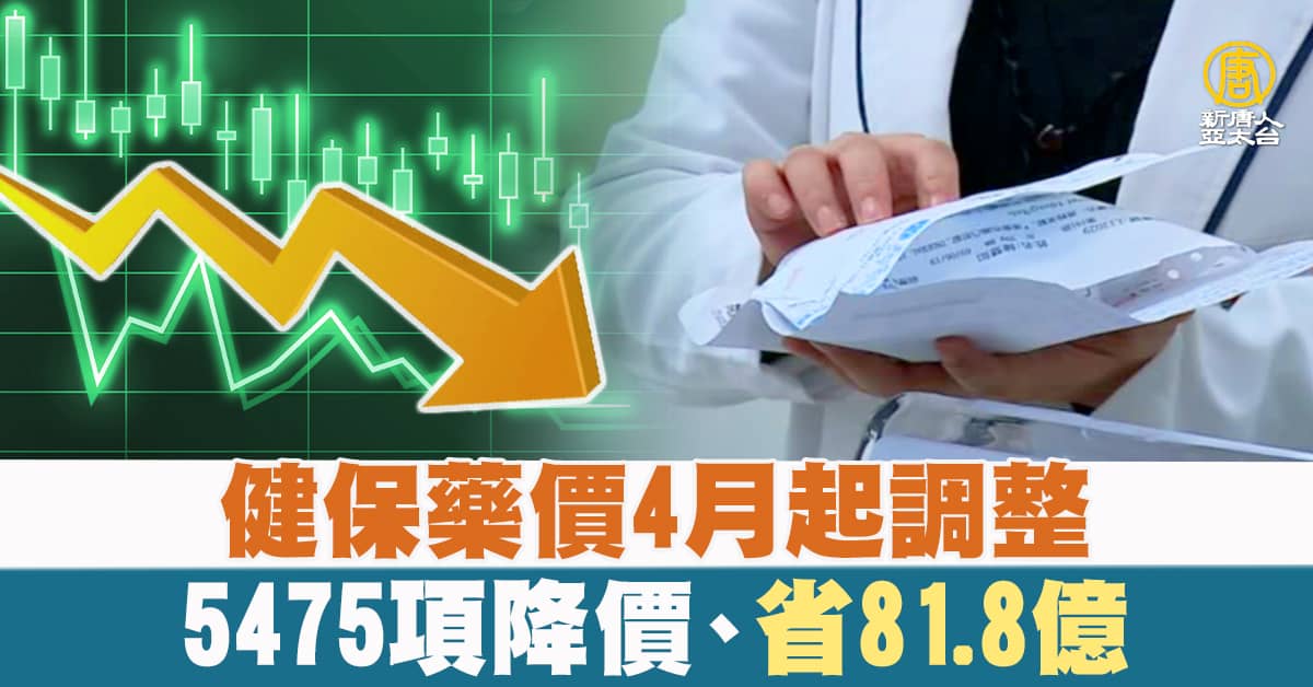 【新唐人亞太台 2023 年 03 月 02 日訊】再來看到,台灣健保署昨晚(1日)公告藥價調整結果並宣布4月上路,估計一年可節省新台幣81.8億元,調整品項為史上最少,其中有5475項降價,而且,在缺藥情況下,同一組藥只要有一項不調整,則整組都不調整,以鼓勵台灣藥廠擴大生產供應。