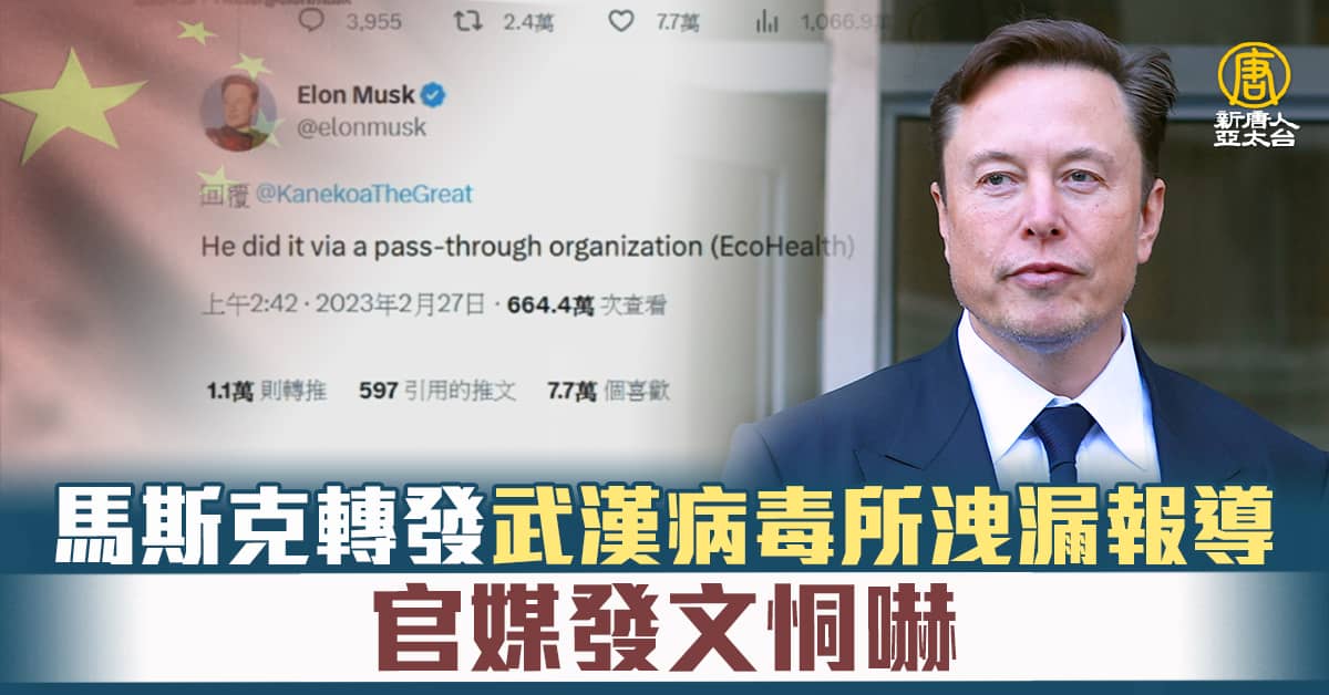 馬斯克轉發武漢病毒所洩漏報導 官媒發文恫嚇