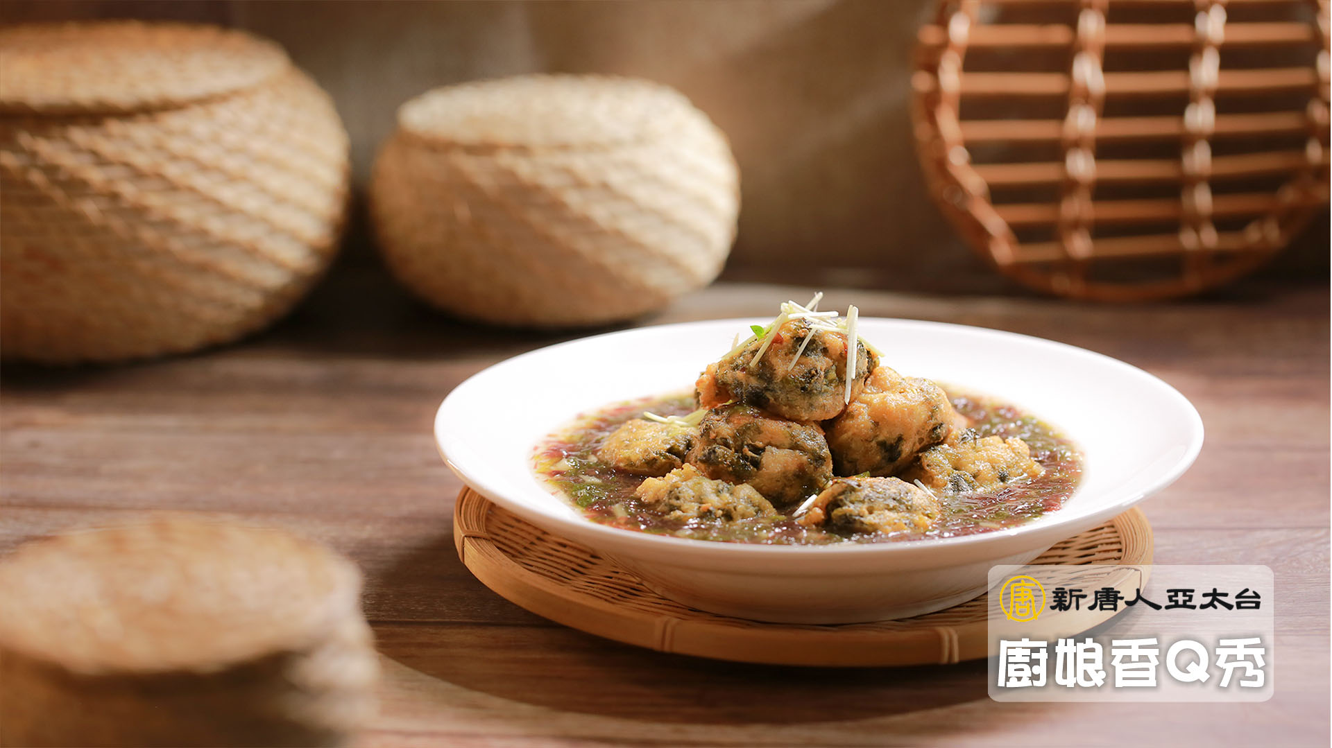 6. 將油炸過的丸子放入,最後可再放上香菜,完成。