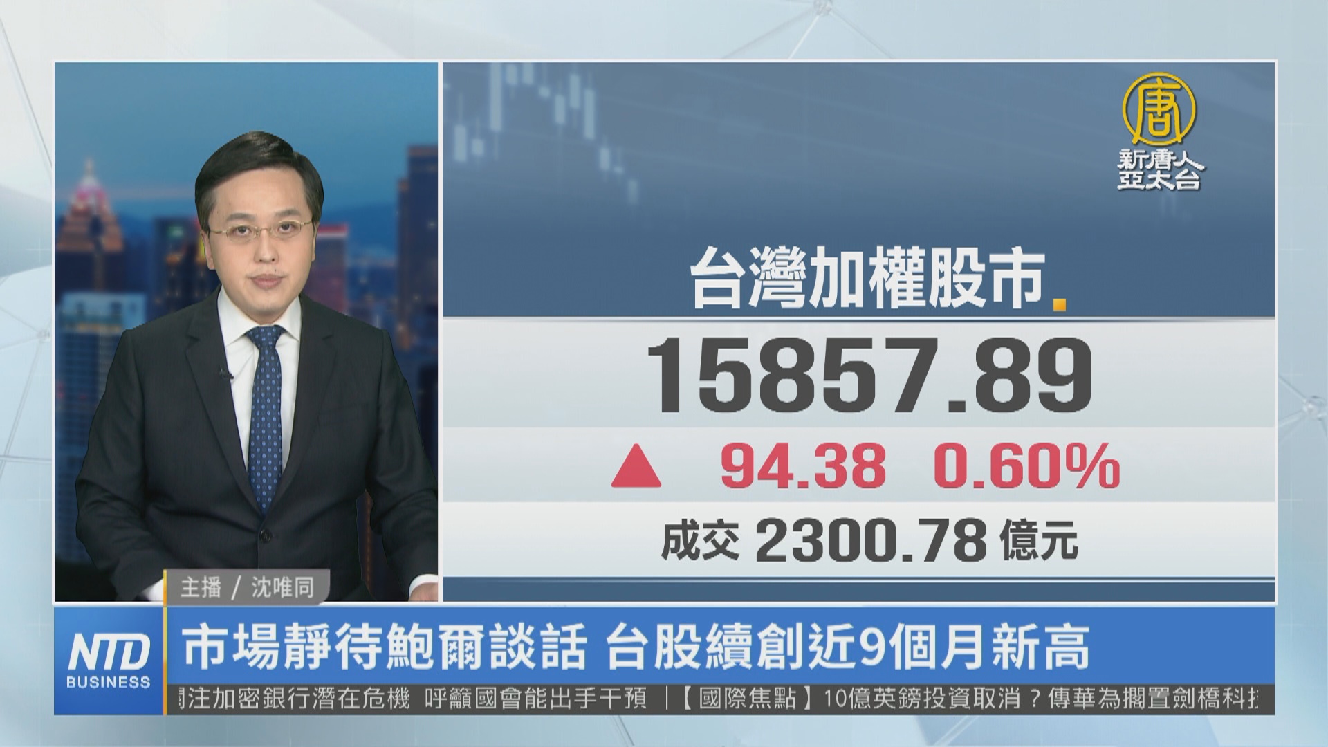 【新唐人亞太台 2023 年 03 月 07 日訊】新聞一開始帶您關心國際股市。美國聯準會(Fed)主席鮑爾(Jerome Powell),台北時間晚間,即將在國會發表證詞,另外眾所矚目的美國就業報告數據即將公布,華爾街投資人態度觀望,也讓周一美國四大指數尾盤受到壓抑,終場漲跌互見。期貨市場預測,今年Fed至少還將升息三次、每次升息一碼。台股7日早盤震盪,電子、金融股回穩,加上儲能概念股,以及工具機等題材獲得關注,加權指數終場上漲94.38點,收在15857.89點,續創近9個月收盤新高。