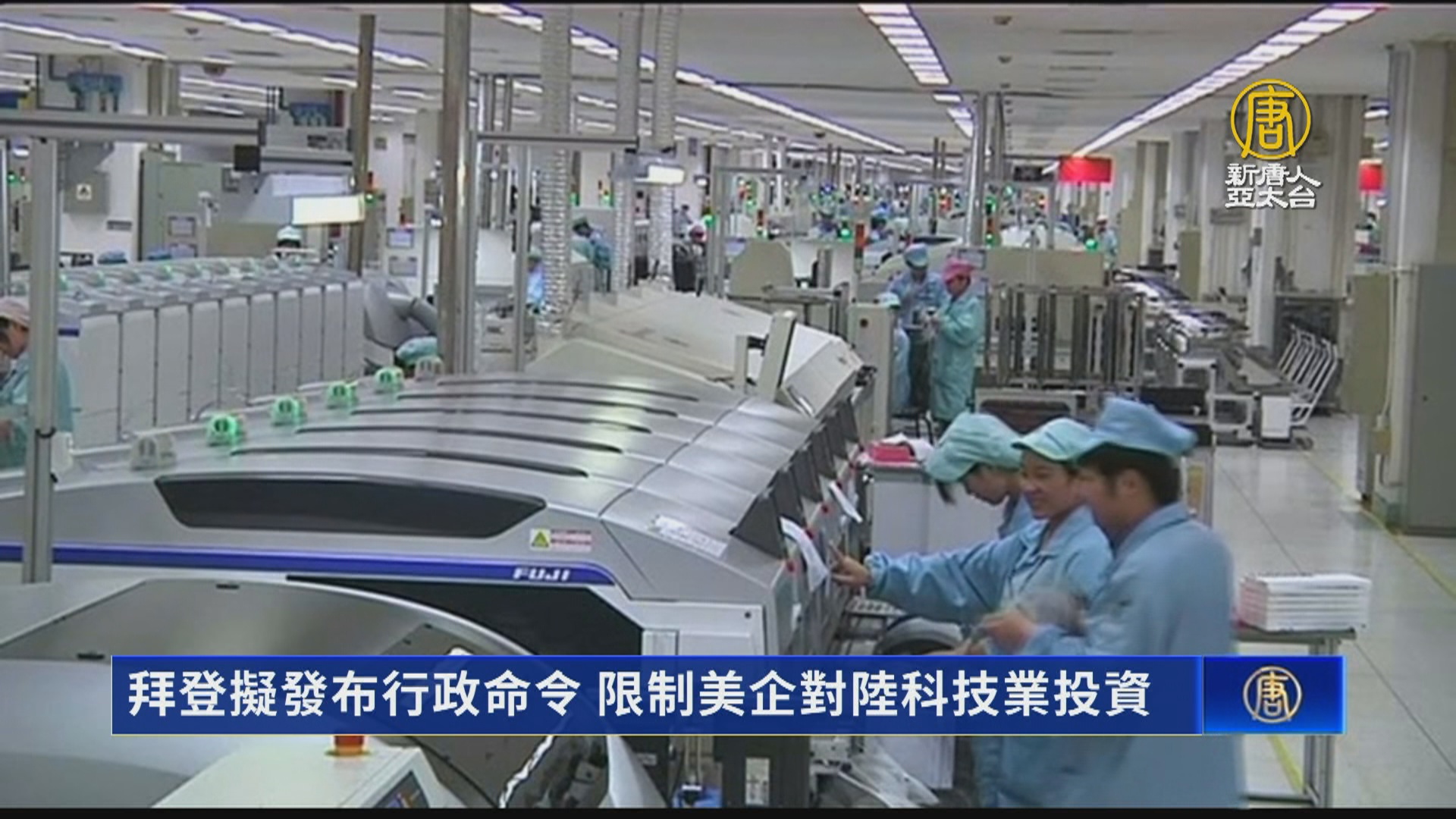 【新唐人亞太台 2023 年 03 月 07 日訊】美中科技戰愈演愈烈,彭博引述知情人士指出,拜登政府即將完成相關的行政命令,限制私募基金等美國企業對中國科技領域的投資,這項行政命令在第二季出台。報導也指出,美國風險資金及私募基金界,近年因應美中關係緊張,早已主動減少在中國的投資。美國知名風險投資公司紅杉資本,啟動相關措施,通過篩選審查,減少對中國科技產業的投資。