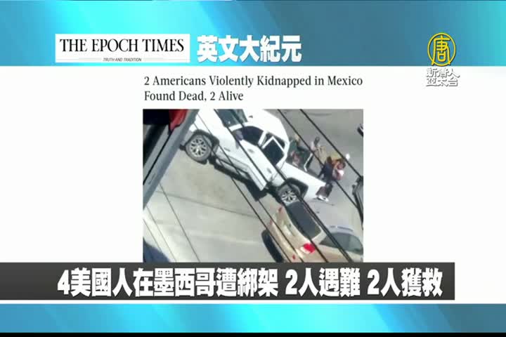 【新唐人亞太台 2023 年 03 月 08 日訊】首先來看到美國大紀元英文版報導:墨西哥官方證實,4名被武裝分子綁架的美國公民,有2人不幸遇難,2人獲救。