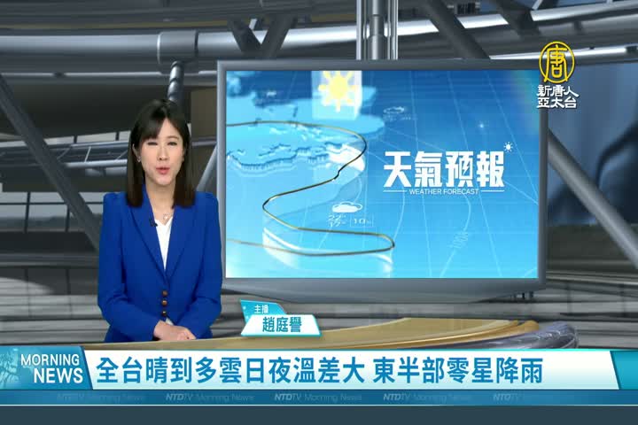 【新唐人亞太台 2023 年 03 月 09 日訊】歡迎您收看3月9日的早安新唐人,我是趙庭譽,先來帶您關心天氣。今天各地仍為穩定的天氣,只有東半部地區有零星降雨的機會,各地高溫普遍在25到27度之間,今天也依舊是日夜溫差大的天氣型態,提醒您早出晚歸請適時增添衣物。接著帶您來看到國際媒體重要訊息。