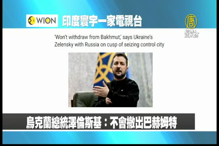 【新唐人亞太台 2023 年 03 月 09 日訊】最後是印度寰宇一家電視台報導:烏克蘭總統澤倫斯基表示,不會撤出巴赫姆特。