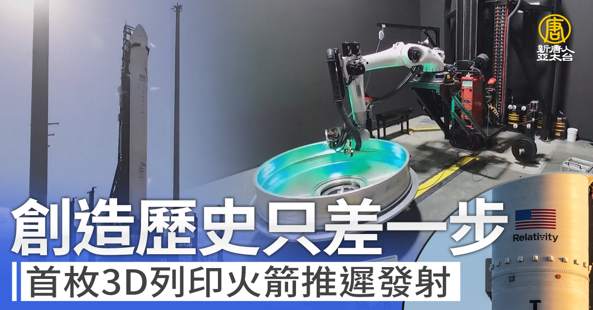 【新唐人亞太台 2023 年 03 月 09 日訊】世界上第一台3D列印火箭「Terran 1號」,原定在週三首次發射,但因為技術原因,發射任務在最後一刻被取消。來看報導: