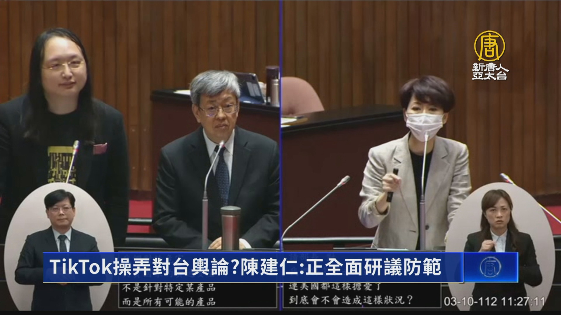 【新唐人亞太台 2023 年 03 月 10 日訊】美國FBI局長瑞伊(Christopher Wray)證實,中國短影音軟體TikTok可能被用來作為對台輿論戰的工具,而各國也紛紛開始禁用TikTok,行政院長陳建仁10日在立法院會備質詢時,被立委問到台灣做法如何,以及是否應更強硬時,做出回應。