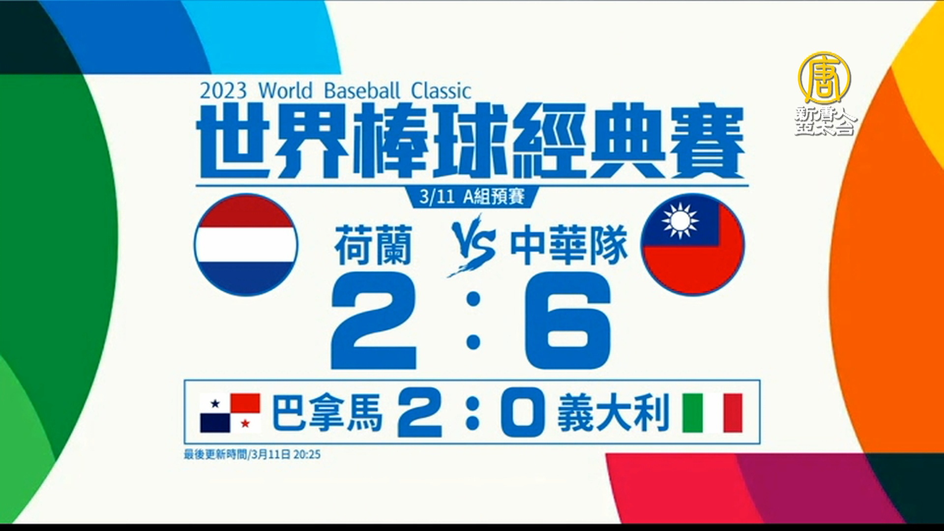 【新唐人亞太台 2023 年 03 月 11 日訊】來關心世界棒球經典賽A組最新戰況,中華隊對上荷蘭,目前比賽進行到3局下半,中華隊暫時以6:2領先荷蘭,這一戰攸關台灣能否晉級。
