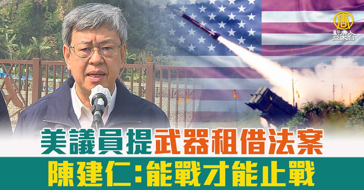 【新唐人亞太台 2023 年 03 月 13 日訊】美國參眾兩院議員近期提出2023年版的「台灣民主防衛租借法案」,促成美國政府,循軍援烏克蘭的模式、在必要時出借武器給台灣。對此行政院長陳建仁週日(12日)指出,台灣「需要備戰、才能夠避戰,需要能戰,才能夠止戰」,感謝美國和台灣一起,維護印太區域的和平穩定。