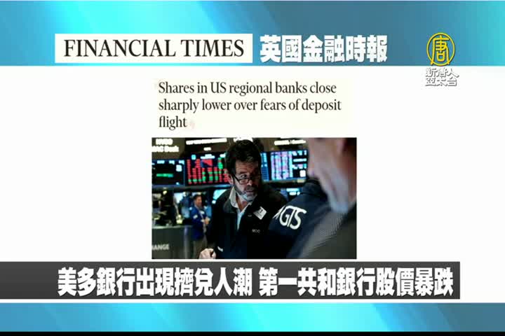 【新唐人亞太台 2023 年 03 月 14 日訊】接著是英國金融時報的報導:美國多家銀行出現擠兌人潮,第一共和銀行股價暴跌。
