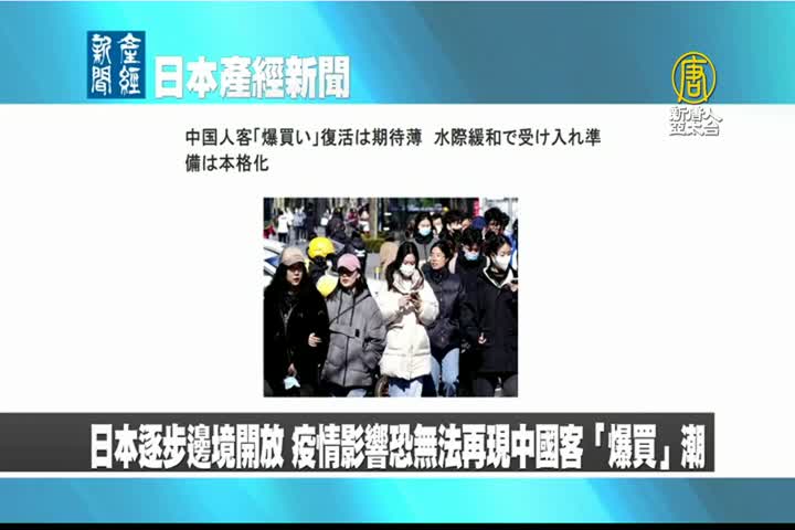 【新唐人亞太台 2023 年 03 月 14 日訊】來看到日本產經新聞報導:日本逐步邊境開放,受疫情影響,恐無法再現中國客「爆買」潮。