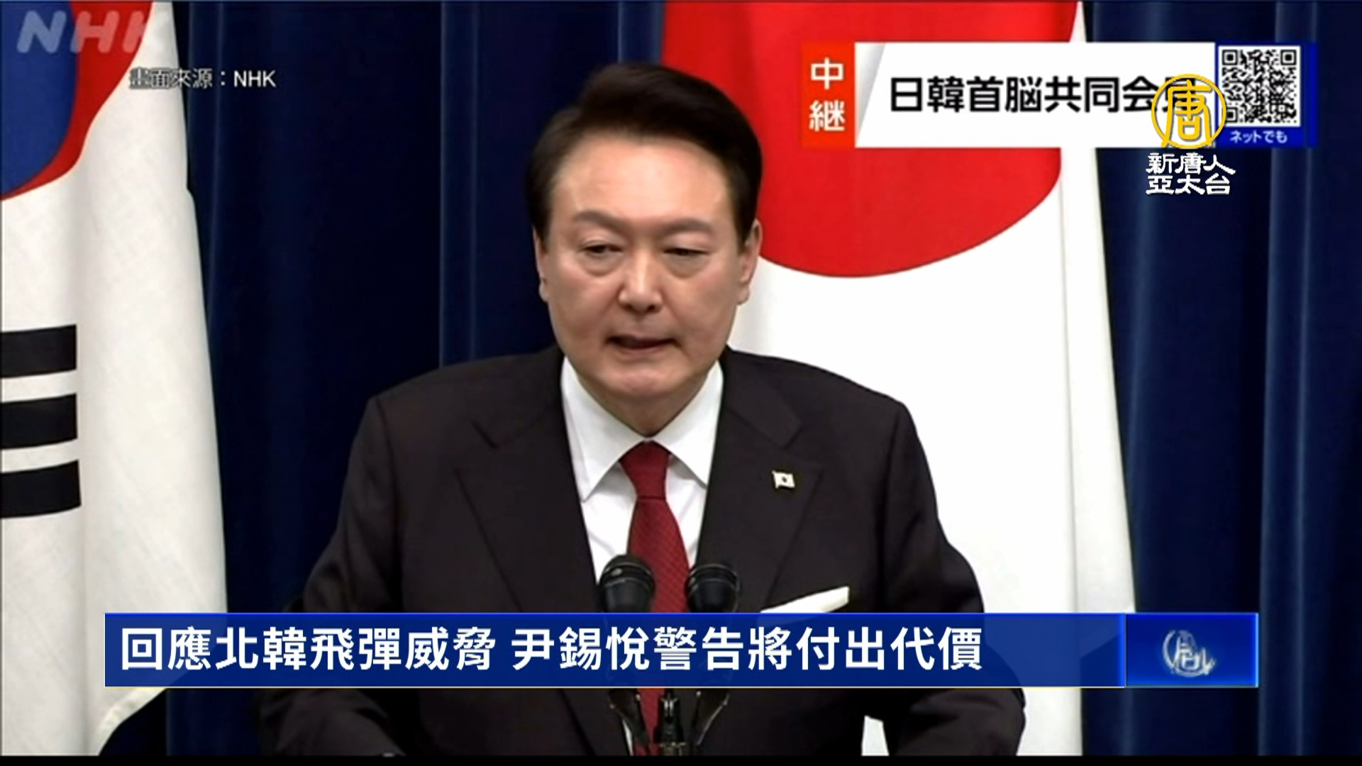 【新唐人亞太台 2023 年 03 月 16 日訊】好,時隔12年,日韓領袖峰會同意重啟穿梭外交。不過今天早上,北韓發射一枚洲際彈道飛彈,飛行1個多小時後,落在北海道以西約200公里的日本專屬經濟水域之外。針對飛彈挑釁,美國、日本與南韓強烈譴責,南韓總統尹錫悅警告,「北韓一定會為魯莽挑釁付出代價」,強調提升美日韓安保合作的重要性。日本防衛省也說,將與美國等盟友緊密合作,全力情蒐分析與繼續警戒監視。