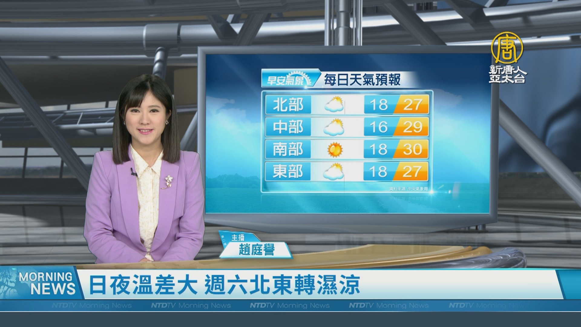 【新唐人亞太台 2023 年 03 月 17 日訊】歡迎您收看3月17日的早安新唐人,我是趙庭譽,先來帶您關心天氣。今天各地氣溫逐日回升,預計高溫普遍可達26度以上,不過,周六、週日,因為受東北季風影響,天氣會稍轉涼,直到下週一,東北季風減弱,氣溫才再回升。帶您一起來看到國際媒體重要訊息。