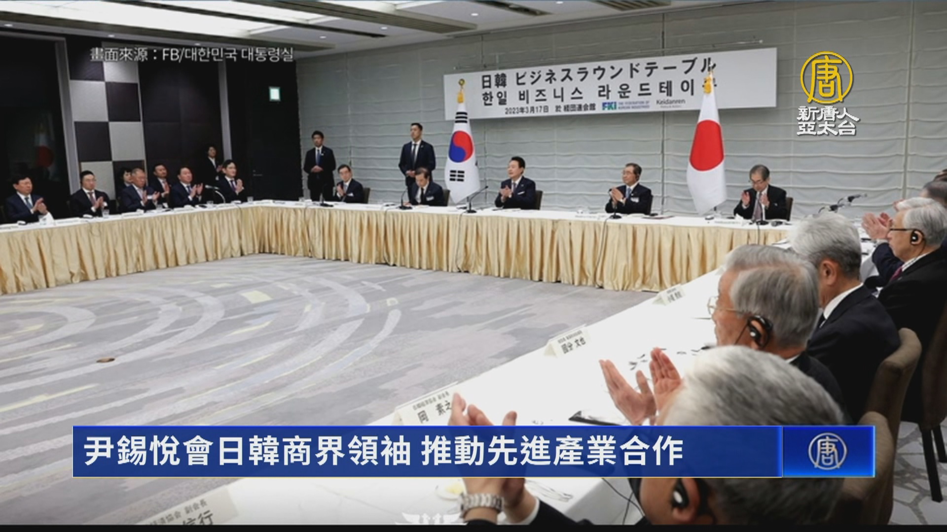 【新唐人亞太台 2023 年 03 月 17 日訊】日本、韓國關係升溫破冰,兩國加強經貿合作。南韓總統尹錫悅,訪問日本行程,17日出席韓日商務圓桌會議,就韓日兩國經濟合作前景與各方進行交流,並鼓勵雙方開展先進產業合作。