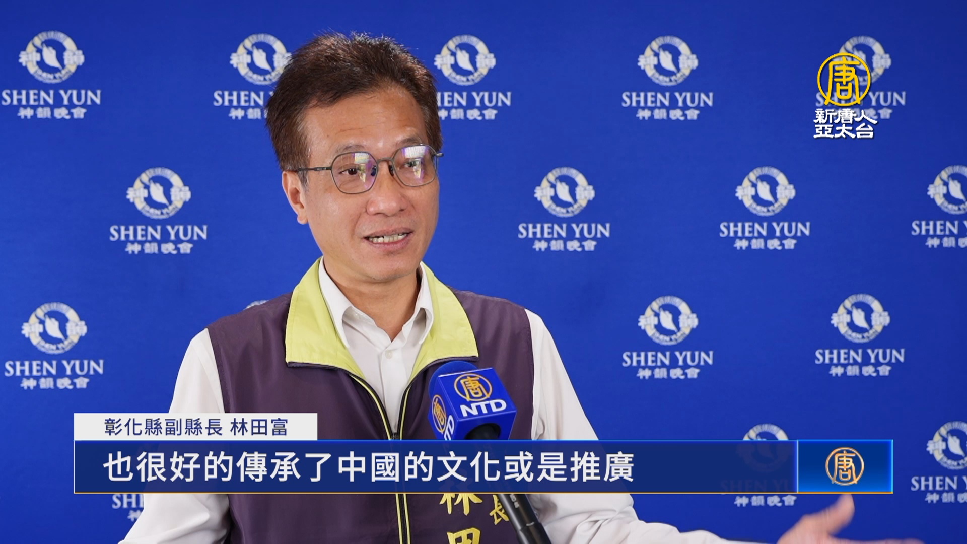 彰化縣副縣長 林田富:「神韻目前在全世界150個國家城市裡面去演出,也很好的傳承了中國的文化或是推廣,這一點我覺得做得特別好,我們就是對神韻所有的工作同仁表達感謝和推崇。」