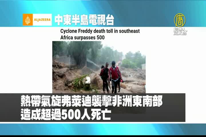 【新唐人亞太台 2023 年 03 月 20 日訊】來看到中東半島電視台報導:熱帶氣旋弗萊迪襲擊非洲東南部,造成超過500人死亡。