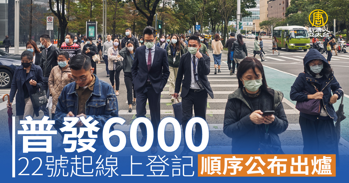 民眾關注6000元現金發放,線上登記入帳方式從22號開始,28號就可以查詢結果,在疫後特別預算案生效後5日陸續入帳,數位部公布分流規劃,22號到26號,採用身分證或居留證號尾數分流,一天是2個數字,從0、1開始。