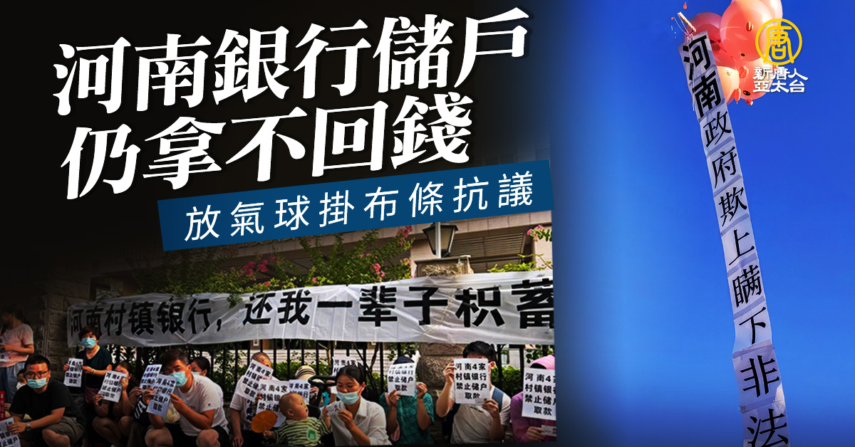 河南銀行儲戶仍拿不回錢 放氣球掛布條抗議|中國一分鐘